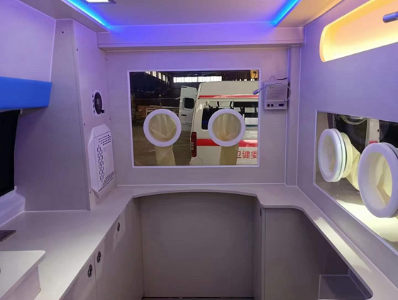核酸检测采样车,采用江铃福特推出的福特新世代全顺底盘改装。整车参考 相关行业标准,集成正压防护、温度调节、对讲、样品传递、车内消毒等功能,可迅速部署于户外,为群体核酸咽拭子采样、样品登记及样品整理提供有力支撑;在整个作业过程中确保医务工作人员与受检人员无直接接触,**限度的保障了** 医务工作人员的作业安全,为新型冠状病毒核酸样本采集及样品整理提供了防护屏障及舒适的工作环境。